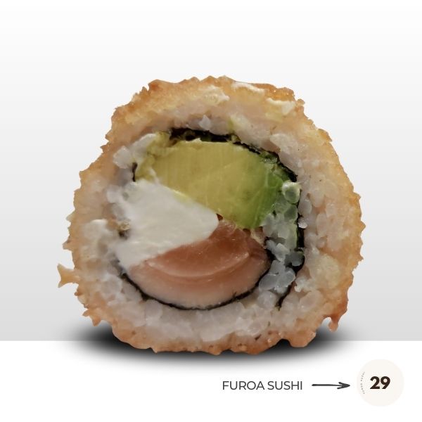 Roll Envuelto en Panko o Tempura a Elección, con Salmón, Queso Crema y Palta.
